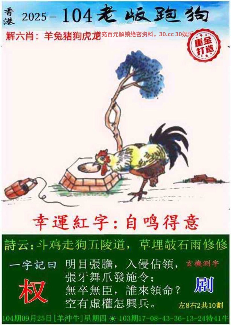104期:金牌七肖【牛猪马鸡兔羊蛇】开:狗32错 |